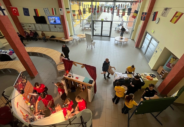 Am 24.02.2024 gelang den Schülerinnen und Schülern sowie ihren Lehrkräften zum wiederholen Mal eine weitere Erhöhung der Qualität beim Tag der offenen Schultür. Zahlreiche Schüler, Eltern und Besucher bewunderten die aufwändig und ansprechend gestalteten Messestände der 12 Seminarkursteams. Alle überzeugten durch Aufbau und Präsentation ihrer Projekte und ermöglichten interessante Einblicke in ihre Arbeit, welche nicht zuletzt der Allgemeinheit zu Gute kommen. Dabei stellten sie sich nicht nur ihren bewertenden Lehrkräften, sondern auch den Fragen der Besucher und einer ganzen Klasse von lettischen Schülerinnen und Schülern. Diese reisten speziell zu dem Zweck an, die Erfahrungen ihrer deutschen Partner zu studieren.